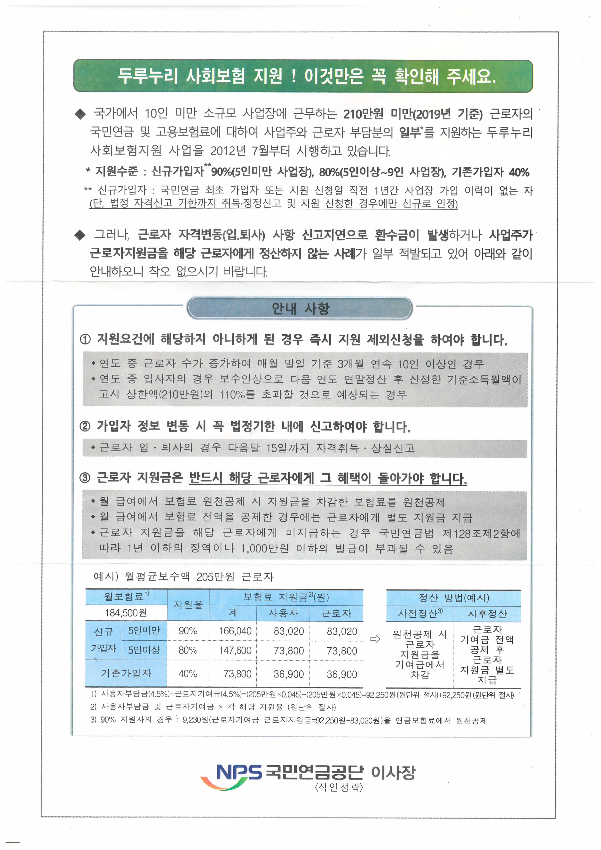 두루누리사회보험지원 안내